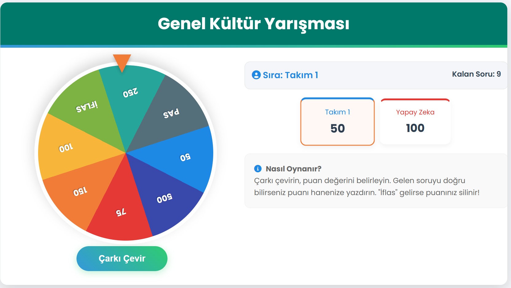 Yarışma Tarzı Çarkıfelek